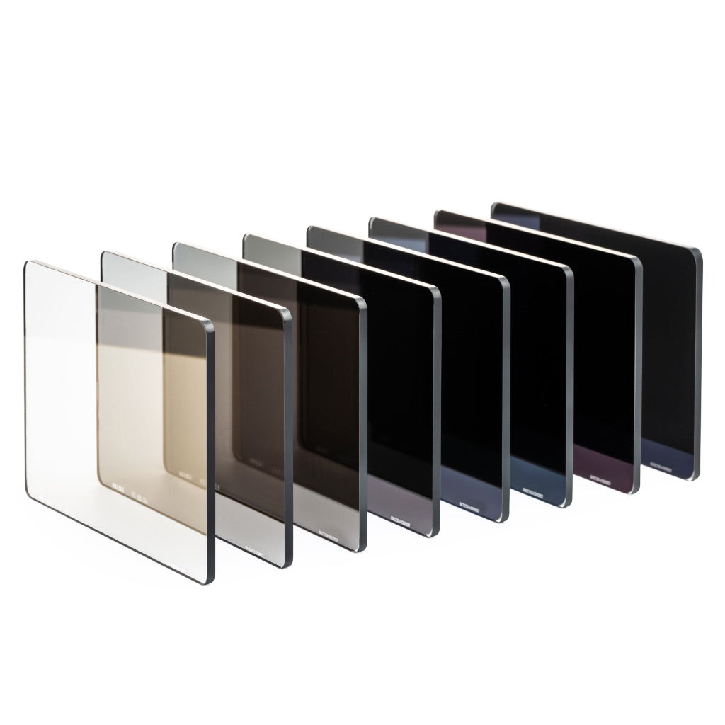 NiSi マットボックスなどに装着する、4×5.65 と 6.6×6.6サイズのシネマ用角型フィルター。「フルスペクトラムND」(Full-Spectrum Neutral Density=FSND)とは、可視光線域のみならず紫外線(UV)から赤外線(IR) 領域まで、全波長において均等に光を吸収することで、色被りや減光ムラのない次世代のNDフィルターです。