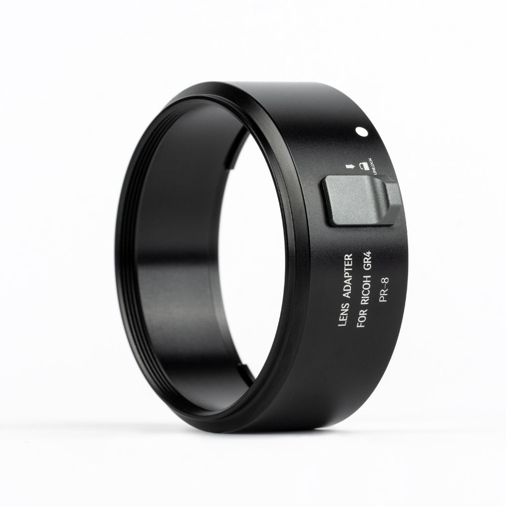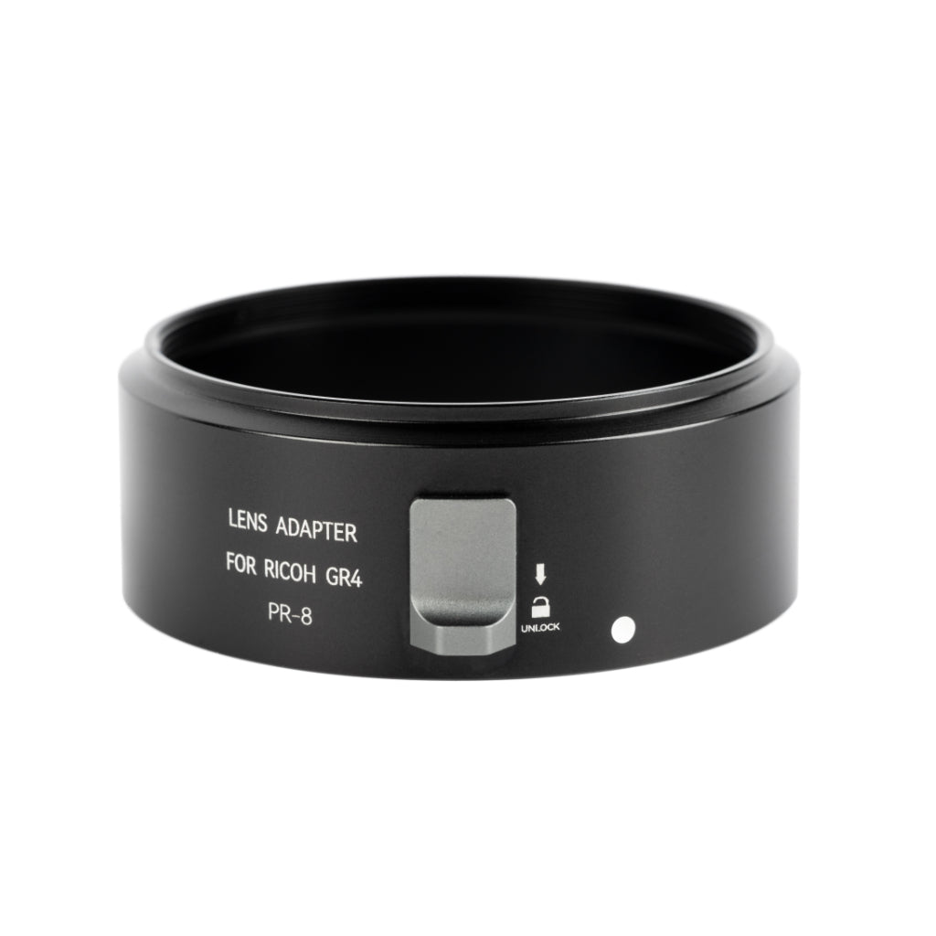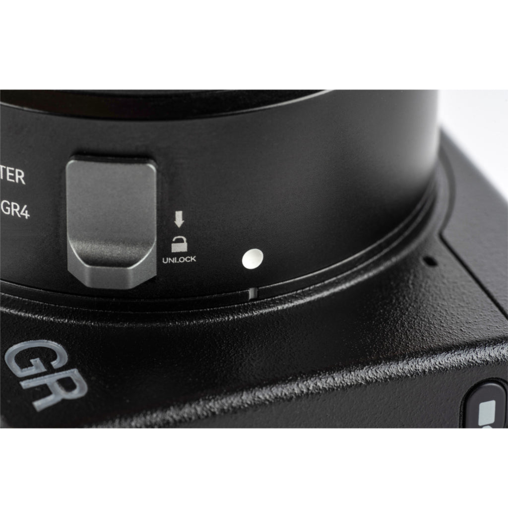 Ricoh GR IV用に専用設計されたレンズアダプターで、49mm径のレンズフィルターを装着できます。アダプターを装着したままレンズの収納も可能です。耐久性に優れたアルミニウム合金製で、軽量ながら頑丈な造りを実現。「GR IV レンズキャップ」(別売)と併用することでレンズをしっかり保護できます。GR IVのスタイリッシュな外観を損なうことなく、創作の幅を大きく広げるアクセサリーです。